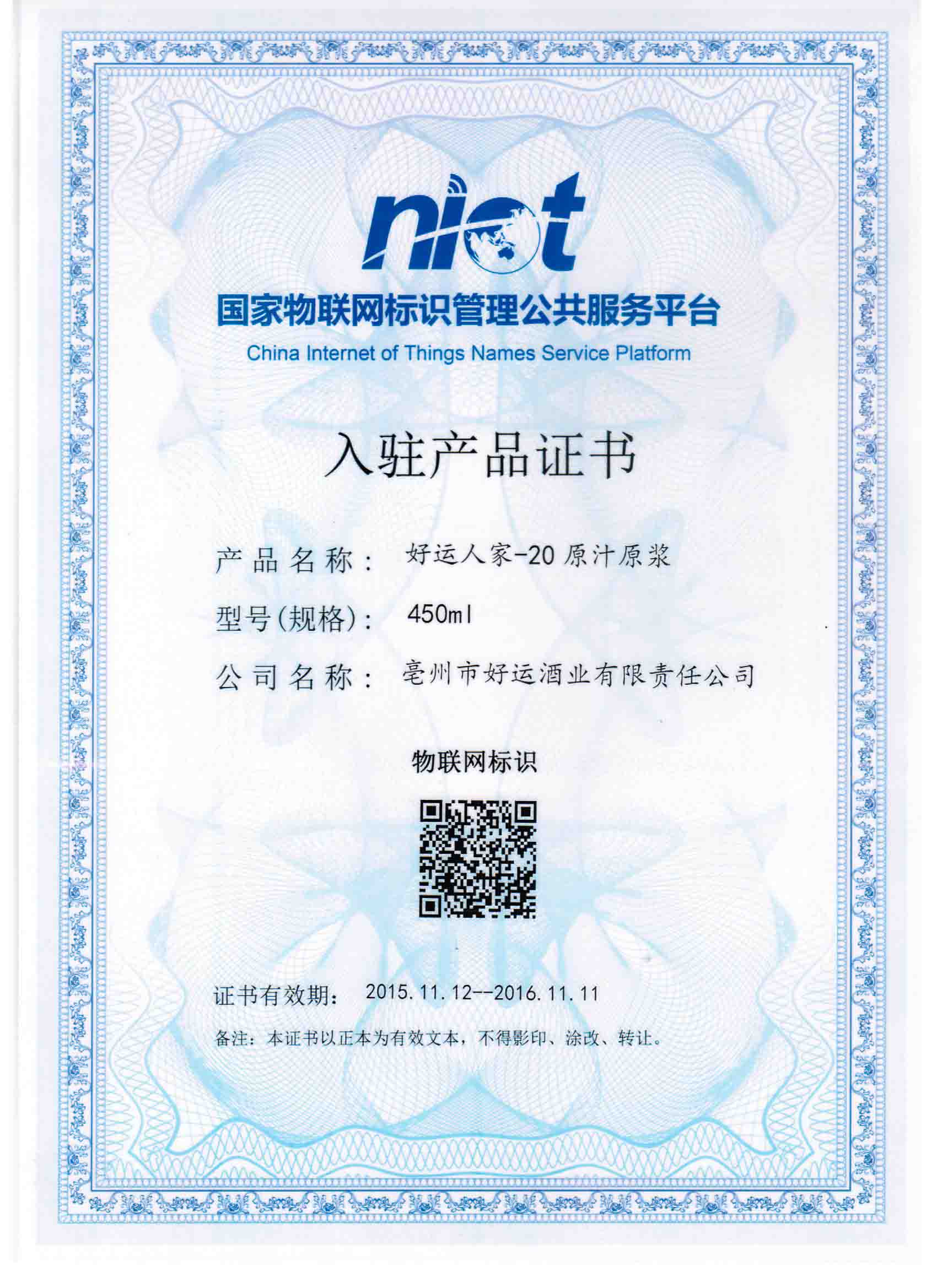 (好運(yùn)人家—20年原汁原漿)入駐國(guó)家物聯(lián)網(wǎng)