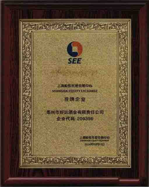 亳州好運(yùn)酒業(yè)成功掛牌上海股權(quán)托管交易中心