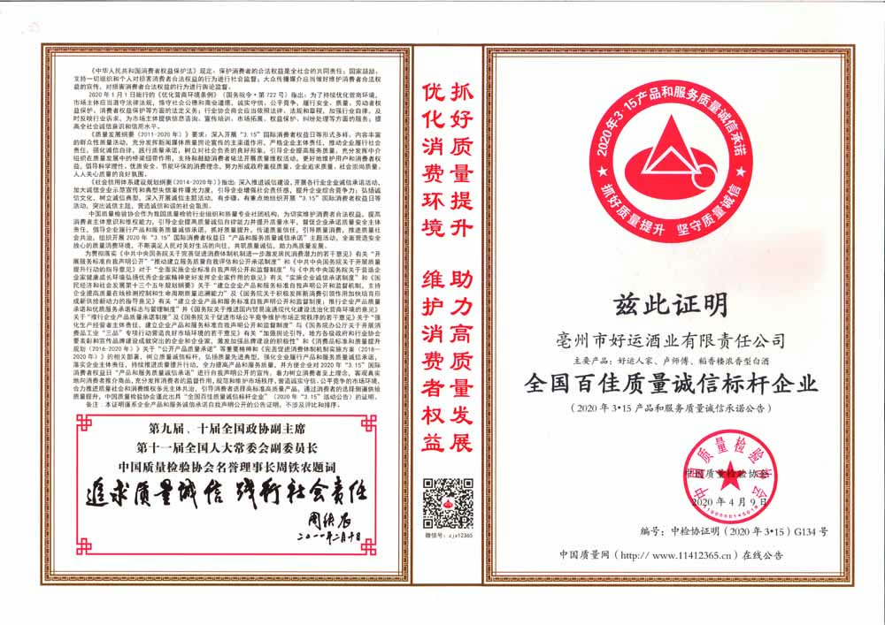 全國(guó)百佳質(zhì)量誠(chéng)信標(biāo)桿企業(yè)